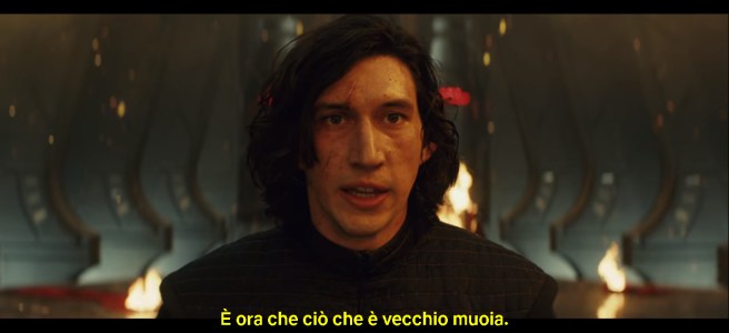 In effetti quello che molti hanno chiesto a Star Wars, soprattutto negli ultimi tempi, è stata una rivoluzione nella conservazione, quando non addirittura nella restaurazione. Uscendo dal cinema e volendo allargare un po’ il campo correndo il rischio di generalizzare, è quello che spesso chiediamo all’arte e persino alla politica in questi anni. Cambiamo tutto, per tornare a un prima che non ha più motivo di esistere: e però ci rassicura. Perché il nuovo, quello che inevitabilmente può spiazzare e lasciare senza fiato per forma e sostanza, fatica a nascere. Perché siamo confusi, tormentati, sempre in periferia di qualcos’altro e scettici rispetto alla possibilità di credere. Come Ben Solo, sappiamo cosa dobbiamo fare, ma non sappiamo se abbiamo la forza per farlo, o quantomeno per desiderarlo.