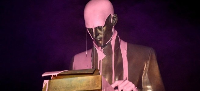 Nei giorni scorsi nella mia home di Facebook sono apparse diverse foto di un monumento imbrattato di vernice: la statua di un vecchio uomo seduto, con un blocco di bronzo adagiato sulle ginocchia. La vernice rosa cola dal volto, macchia la statua in maniera copiosa e irregolare. Quello che vedo suggerisce un che di mortifero e gioioso insieme. Non ho altre informazioni a riguardo, tanto da arrivare a supporre che il vecchio sia William Burroughs: al momento le immagini non sono accompagnate da alcuna didascalia.